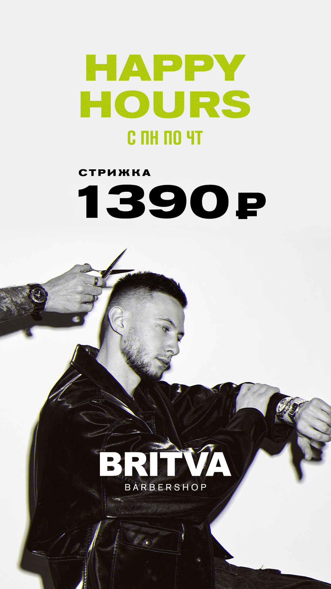 • когда твой друг воспользуется услугами в BRITVA, тогда каждому из вас будет начислена скидка 500 рублей, которой вы сможете воспользоваться при следующем посещении барбершопа (при покупке услуги от 1000 рублей);